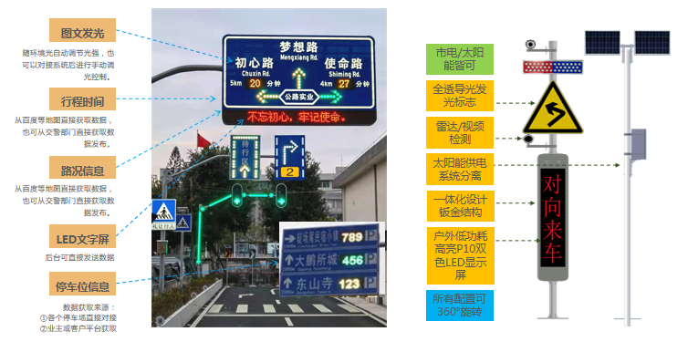 智慧交通解決方案主要由車路協(xié)同系統(tǒng)、引導(dǎo)系統(tǒng)組成。