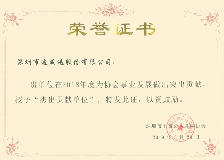 在本屆論壇上,主辦單位對2018年度對深圳市上市公司并購協(xié)會有突出貢獻(xiàn)的優(yōu)秀會員單位及杰出貢獻(xiàn)單位進(jìn)行表彰,迪威迅榮獲“杰出貢獻(xiàn)單位”榮譽(yù)。自公司2011年上市以來,一直致力發(fā)掘創(chuàng)新性中小企業(yè)并進(jìn)行戰(zhàn)略投資,成立了并購基金,通過并購將業(yè)務(wù)擴(kuò)展到智慧教育、網(wǎng)格化管理等智慧城市的縱深方向。近一年來,公司與并購協(xié)會保持密切合作,積極尋找優(yōu)質(zhì)且適合的并購標(biāo)的,促進(jìn)新戰(zhàn)略規(guī)劃加速落地,為國家經(jīng)濟(jì)轉(zhuǎn)型和升級貢獻(xiàn)自己的一份力量。