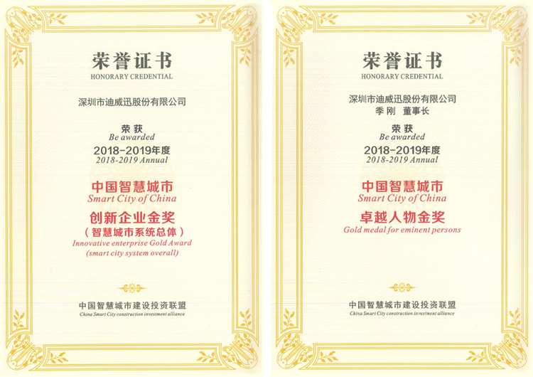 迪威迅做為深圳市智慧城市研究會副會長單位出席此次論壇活動,并獲得由中國智慧城市建設(shè)投資聯(lián)盟、中國智慧城市專家委員會授予的2018-2019年度“中國智慧城市創(chuàng)新企業(yè)金獎(智慧城市系統(tǒng)總體)” 榮譽獎項,以及迪威迅董事長季剛先生榮獲2018-2019年度“中國智慧城市卓越人物金獎”榮譽獎項。