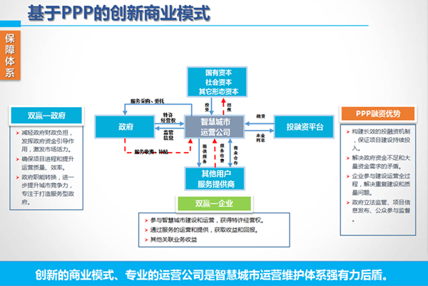 “PPP模式不僅解決了智慧城市項(xiàng)目投資大、回款慢等制約,也使企業(yè)由原先單個(gè)項(xiàng)目投標(biāo)方轉(zhuǎn)變?yōu)榭偘缮探巧?,從而可以整合各方面資源和數(shù)據(jù),提高項(xiàng)目質(zhì)量、建設(shè)和運(yùn)營(yíng)效率。”前述迪威視訊受訪人表示。