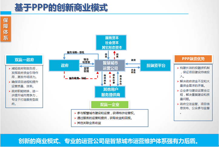 PPP模式由政府購買服務(wù),鼓勵社會資本投入,委托專業(yè)公司運營,可以有效地解決智慧城市建設(shè)和運營維護中的一系列難題。