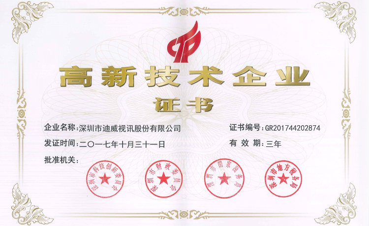 迪威迅再次通過(guò)國(guó)家高新技術(shù)企業(yè)認(rèn)定